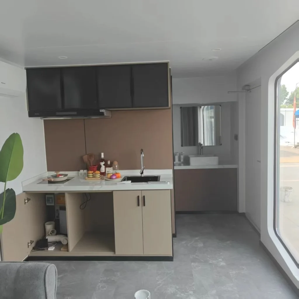 A50 kapselhus erbjuder en exklusiv lösning för kompakt boende med en elegant och hållbar design på 18,2 m². Utrustad med AI-röststyrning och energieffektiva system, skapar den en modern och bekväm miljö för 2–4 personer. Perfekt för både stadsboende och fritidsliv, kombinerar denna bostad lyx med miljömedvetenhet och hög kvalitet, certifierad enligt CE, ISO9001 och TUV.