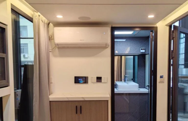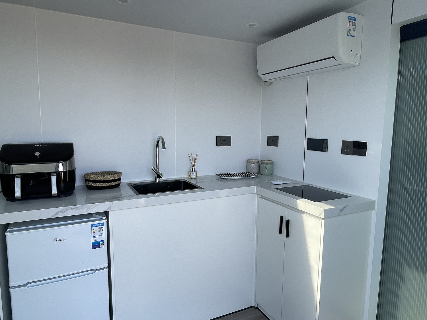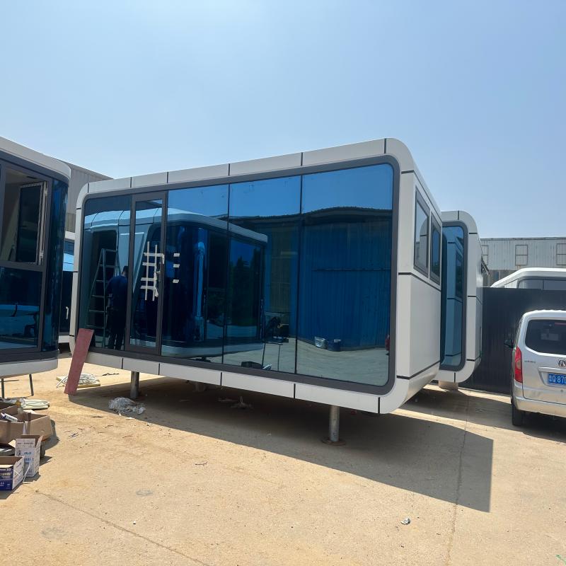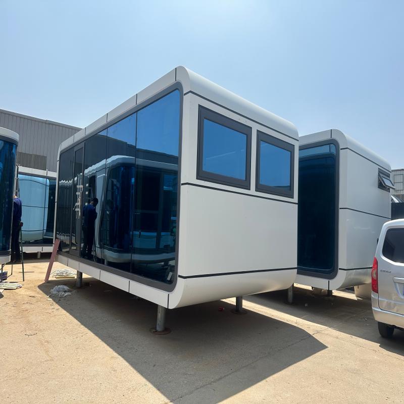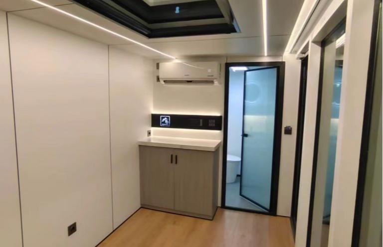 E50 kapselhus erbjuder en modern och elegant lösning för par som söker en mysig och anpassningsbar tillflyktsort, med funktioner som golv-till-tak-fönster, takfönster, och en effektiv planlösning för bekvämt boende.