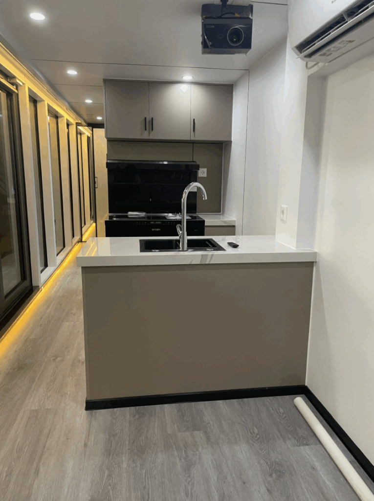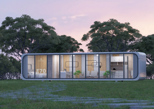 Upptäck E70, ett innovativt och stilrent kapselhus designat för att erbjuda komfort och anpassningsbarhet. Med måtten 11,5 m x 2,15 m x 2,5 m maximerar E70 funktionalitet och användbart utrymme samtidigt som det bibehåller enkel transport. Invändigt finner du en rymlig och ljus öppen planlösning med panoramafönster från golv till tak, vilket ger fantastisk utsikt och en naturlig koppling till utomhusmiljön. Layouten är helt anpassningsbar för att möta olika projektbehov, oavsett om det gäller privata hem, kontor eller semesterbostäder.
