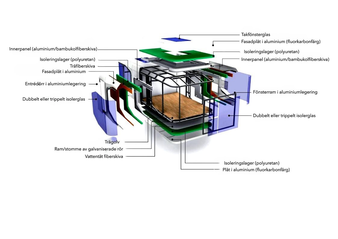 Kompromisslös kvalitet och hållbarhet K30s är byggd för att stå emot tidens tand och nordiskt klimat. Konstruktionen består av en robust varmförzinkad stålstomme och fasad i aluminium av flygplansklass. Tack vare detta materialval är huset i princip underhållsfritt. Dessutom säkerställer det trelagers isoleringssystemet en exceptionell energieffektivitet året runt, vilket gör att vi tryggt kan erbjuda en marknadsledande 10-års konstruktionsgaranti.