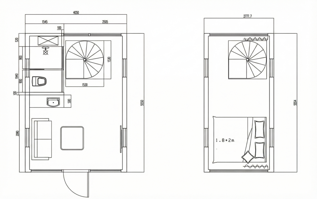 Smart Loft: Spiraltrappa leder upp till sovloftet, vilket maximerar ytan.