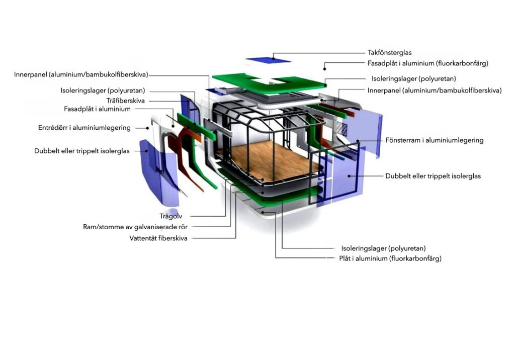 Robust byggkvalitet: Stålram och flygplansaluminium med 10 års konstruktionsgaranti.